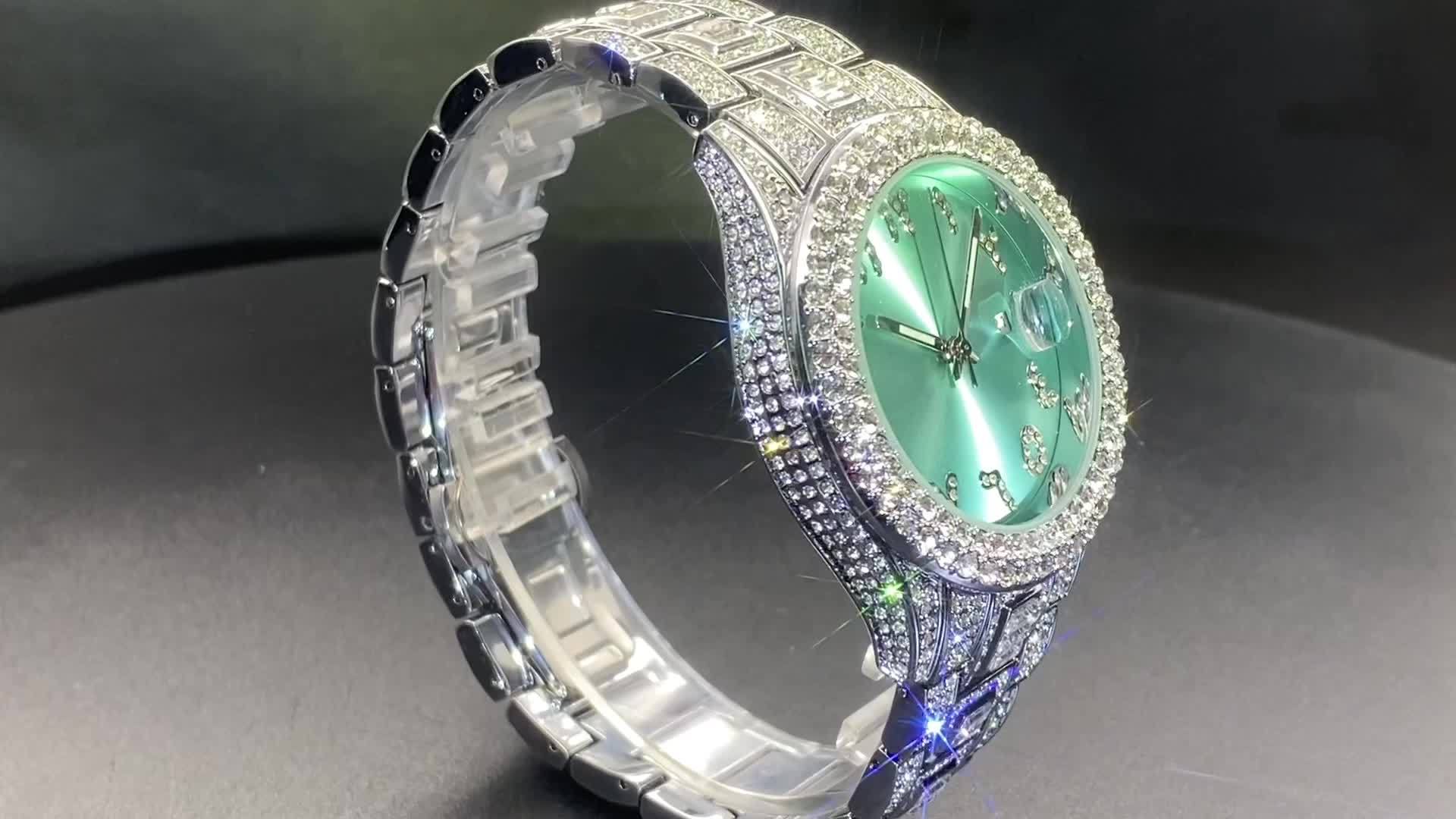 MISSFOX Luxury Couples' Quartz Watch - Ice Blue Rhinestone Luminous