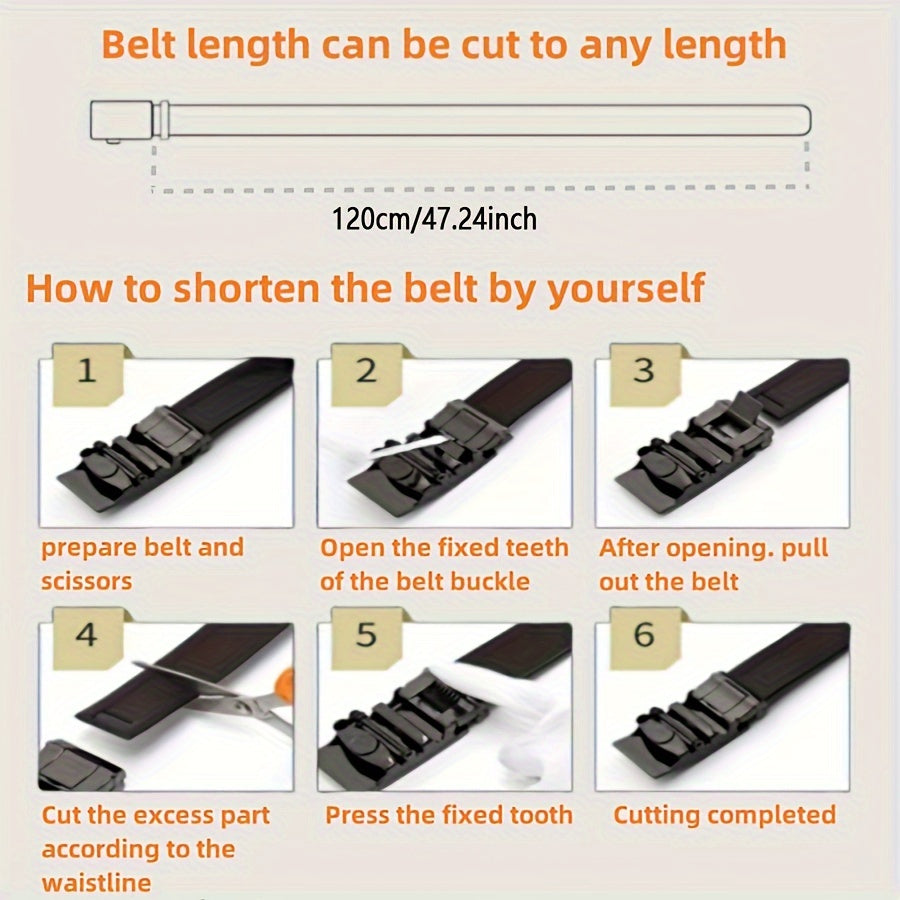 Classic style accessory with New Men's Vintage Genuine Leather Belt! 👔 Featuring tiger head automatic buckle, business casual design, second layer cowhide construction, carved waistband, embossed design detail, black color, alloy buckle, and perfect for father and husband as stylish office belt professional wardrobe essential with retro fashion appeal.