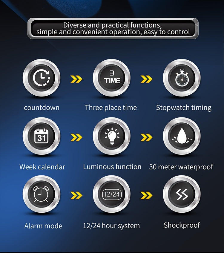 OFNS Men's Digital Watch - Multifunctional Electronic Timing Square
