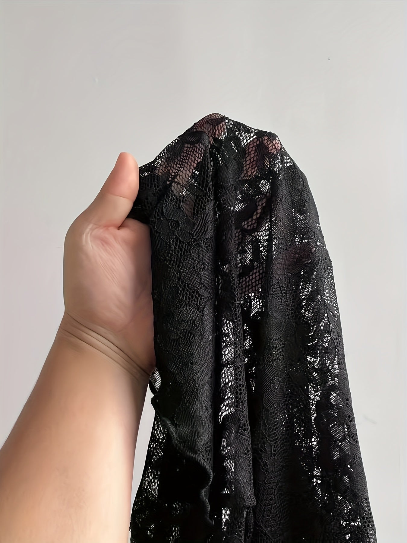 Sexy summer style with Women's Floral Mesh Crop Top! 🌸 Featuring black and white floral pattern, mesh fabric, long sleeves, crew neck, stretchy polyester blend, and skinny fit design.
