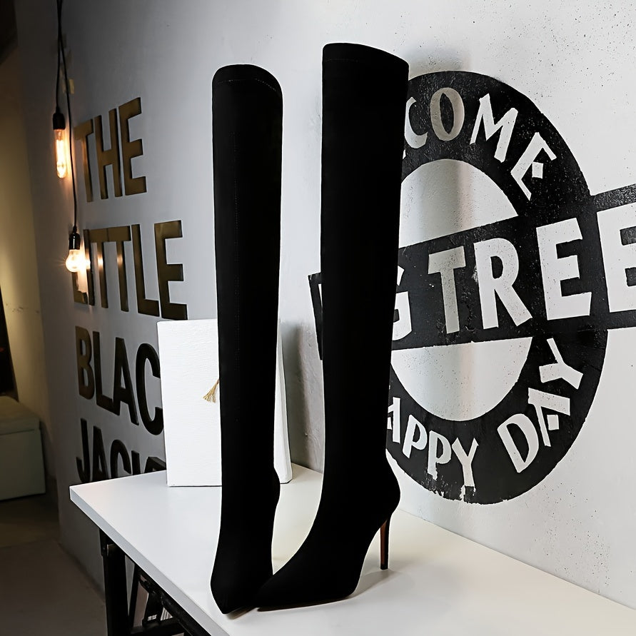 BIGTREE Women's Over-the-Knee High Heel Boots - Stiletto Black